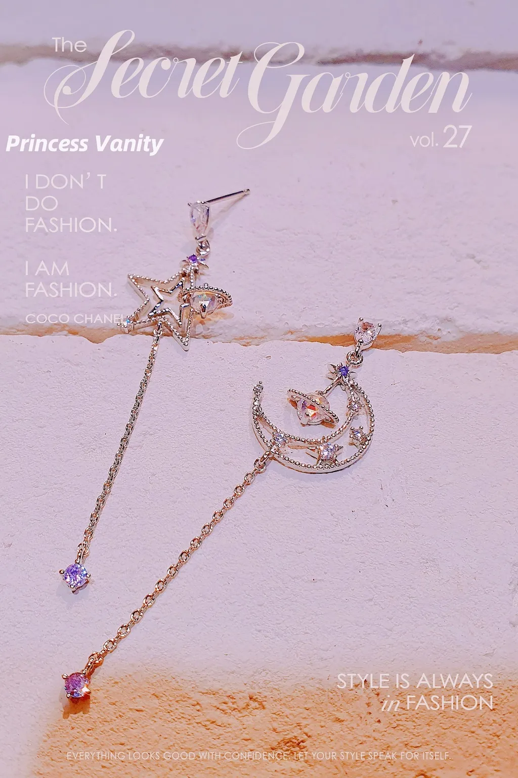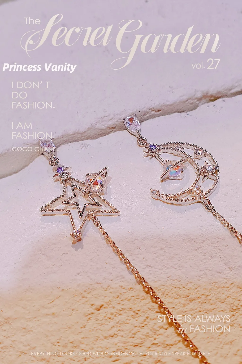 左耳以閃耀星星為主角,右耳則以精緻的月亮與星辰裝飾,象徵著夢想與浪漫的平衡。