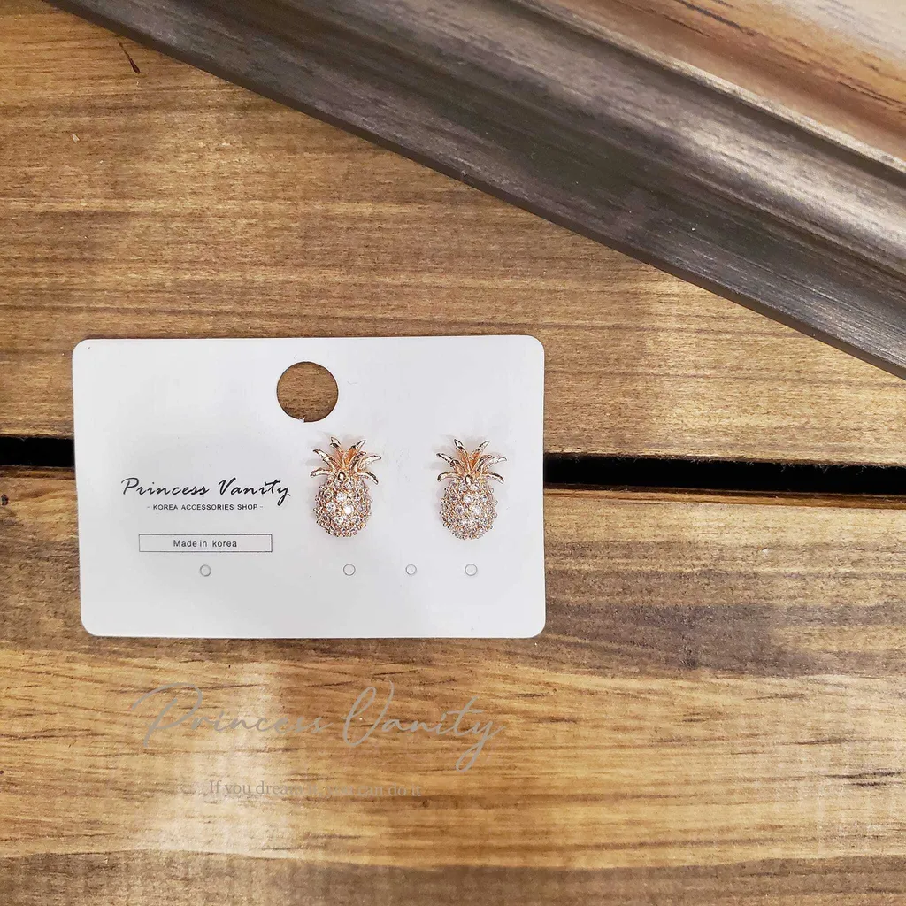 【滿鑽。旺來】立體鳳梨玫瑰金滿鑽銀針耳環 / 可改夾