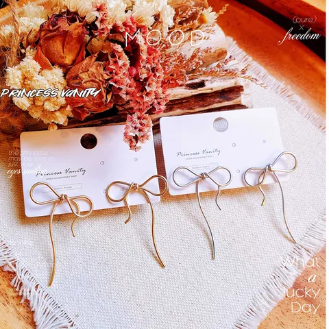 【天使的寵兒。】蝴蝶結簡約金屬消光色鋼針耳環 / 可改夾式耳環