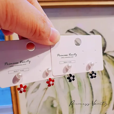 【保護色。】天鵝絨珍珠小花四件式鋼針耳環 / 可改夾式耳環