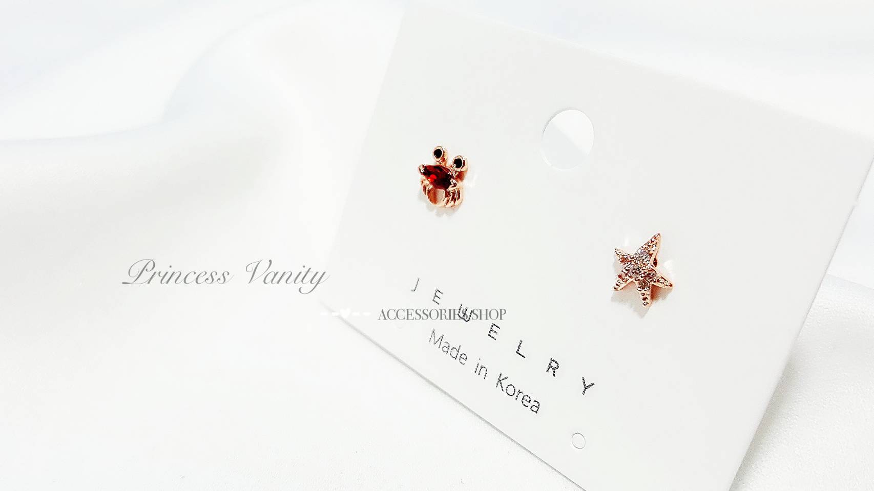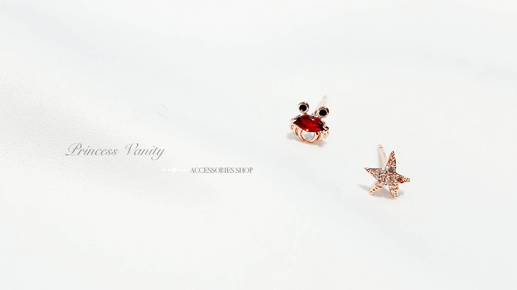 【邂。逅】螃蟹海星海洋風銀針耳環 / 可改夾