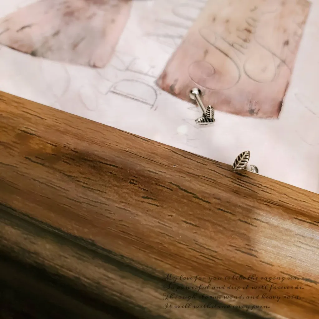 【烙.】葉子文青造型轉珠耳環鎖式耳骨釘(單支販售)